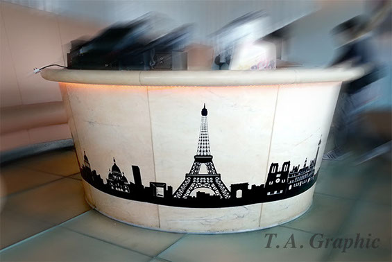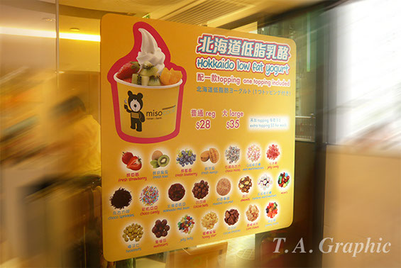是用噴畫裱貼在 foam board 上。輕身平滑,容易安裝。