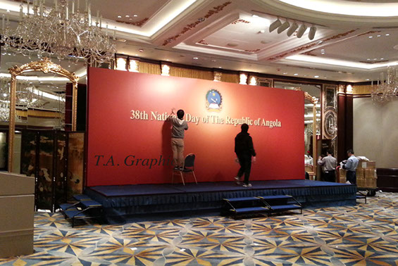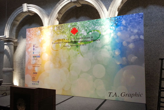 拉布Backdrop 用噴畫布拉在木板上,較重較難安裝,適合較大型宴會用。