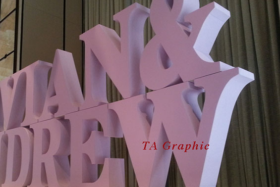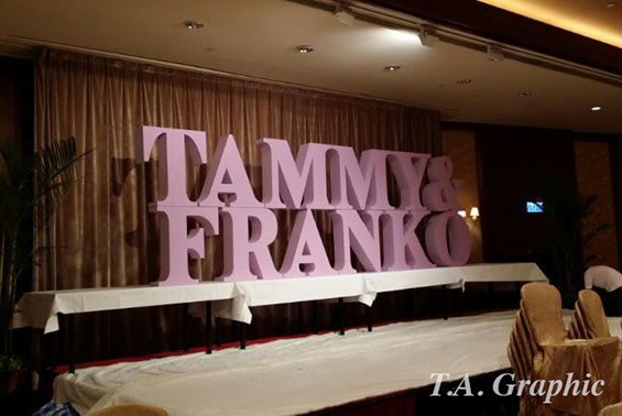 婚禮用Backdrop板發泡膠字,可跟設計增加立体較果。(也可用在Reception位)