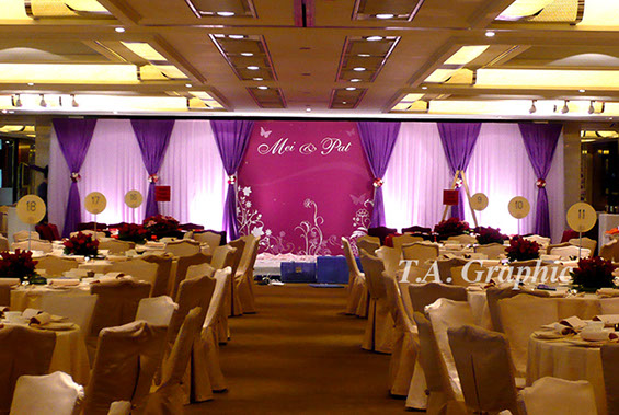 婚禮用Backdrop 可因應新人喜愛配合燈光彩布....